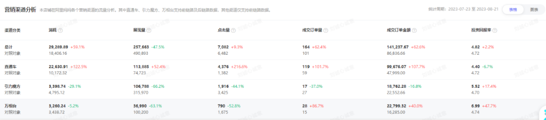 “在今年上半年,推薦流量增長趨勢明顯,結合店鋪競品流量分析以及店鋪自身情況,我們在接手后面調整店鋪流量結構,在保持原有的搜索流量不變的情況下,細分推薦板塊流量計劃,為店鋪帶來新的品類機會。”