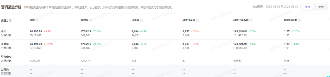 2.在前期的付費板塊中,店鋪只開啟了直通車推送,以搜索流量為主。產品的ppc較高,在推廣過程中投產比較低 。
