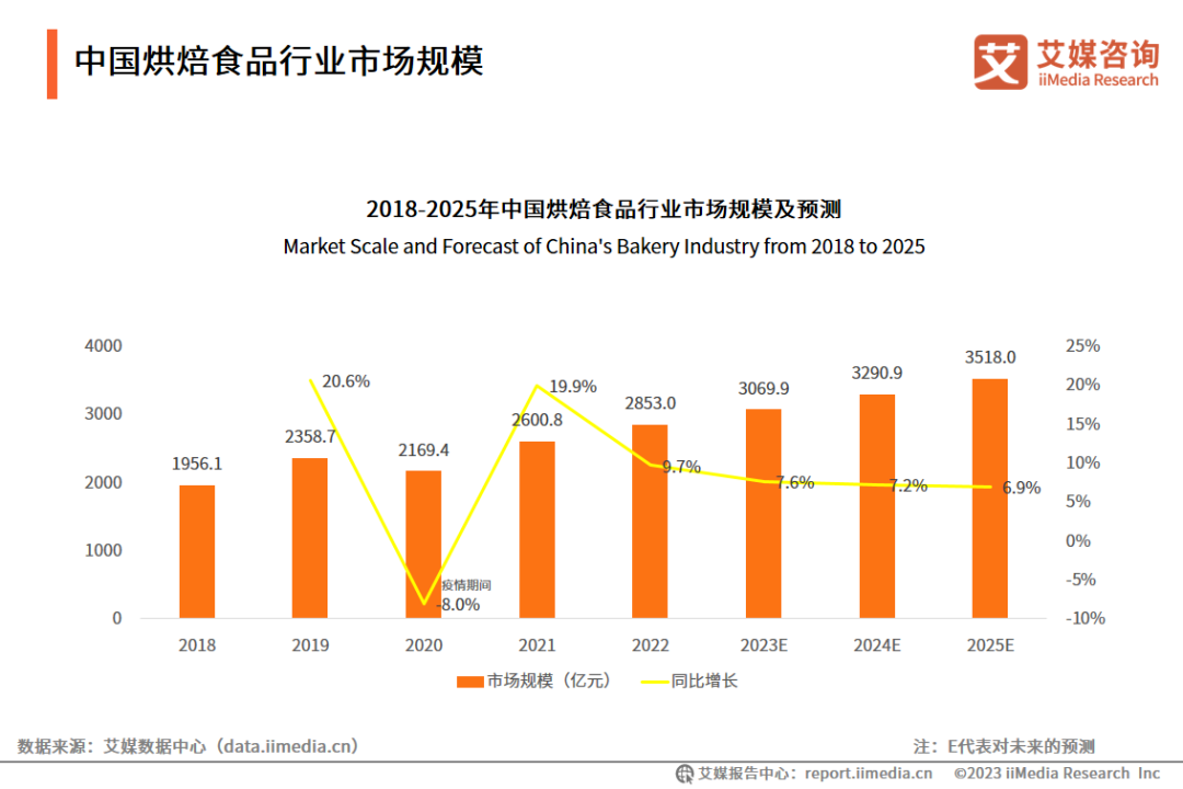 中國烘焙食品行業(yè)市場規(guī)模,數(shù)據(jù)來源:艾媒數(shù)據(jù)中心