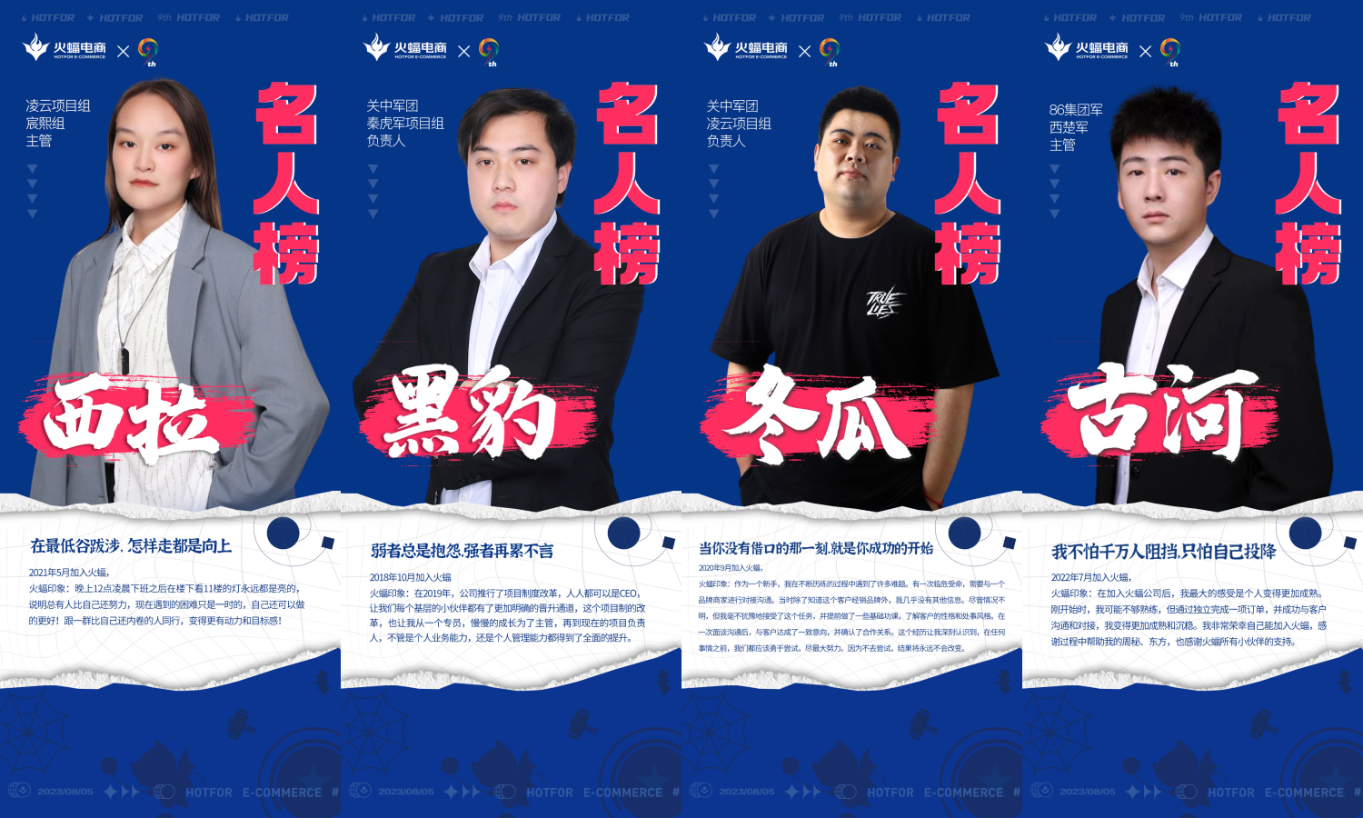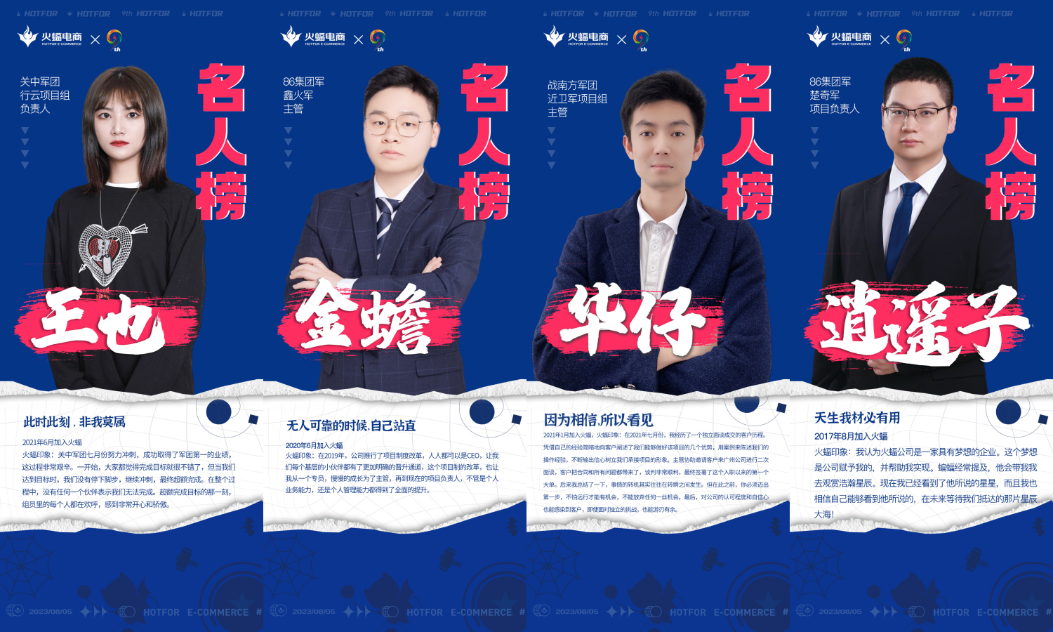 在9周年慶典上,鐘雨清先生特別強調:“組織經營就是人才經營,與誰同行決定了公司的發展方向,火蝠需要的是一群‘尚樸實,耐苦勞’,有共同信仰為之不懈奮斗的‘戰友’。因為在不同的階段,挫折是成功必不可少的經歷,是開創偉大事業的必經之路,同時這也是檢驗團隊最好的方式,只有戰友才能陪伴火蝠度過暗夜。”他要求一線負責人、主管、軍團長牢抓人才經營源頭,嚴格把控招聘質量關口,要給年輕人創造土壤和舞臺,要尊重奮斗者。他希望通過「名人榜」積極發揮帶頭作用,成為員工的榜樣,去帶動和影響公司里的其他人,建立目標感,為火蝠事業的發展貢獻出自己的力量、青春和時間。