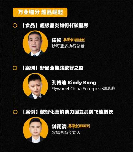 具體而言,在“萬店連鎖·零售復(fù)興”維度,面對電商換擋期,如何洞察消費趨勢?如何打爆細(xì)分賽道超級單品?億邦動力總裁賈鵬雷、火蝠電商CEO鐘雨清等人將發(fā)表演講。圍繞數(shù)智化營銷助力國貨品牌飛速增長、超級品類如何打破瓶頸、新品全鏈路數(shù)智之路等熱點話題,共同探尋新零售下各品類的崛起之路。